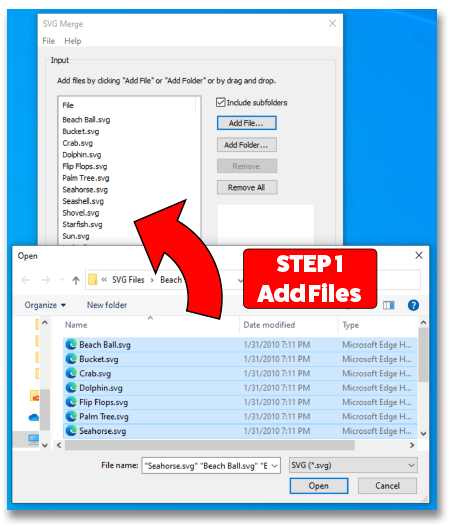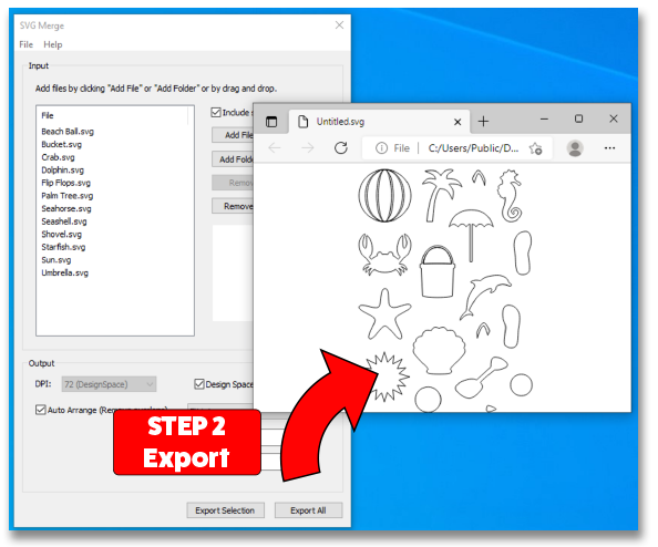 "SVG Merge" allows you to quickly and easiliy combine multiple SVG files into a single SVG file.